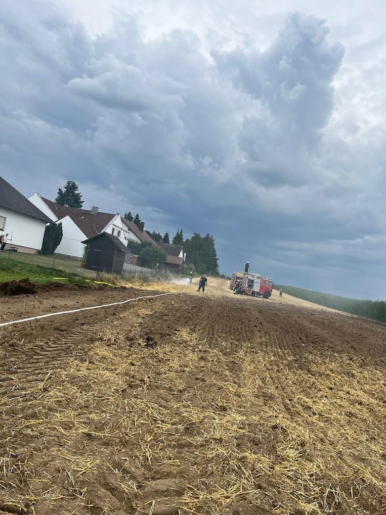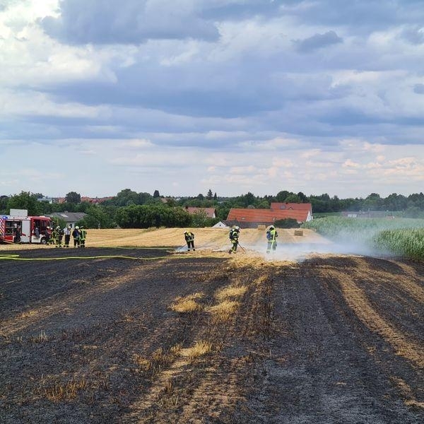 Ein brennendes Stoppelfeld wurde durch die eingesetzten Kräfte abgelöscht und durch einen Landwirt umgefräst. Anschließend wurde ein ca. 2m breiter Schutzstreifen in Richtung der anliegenden Bebauung durchfeuchtet.